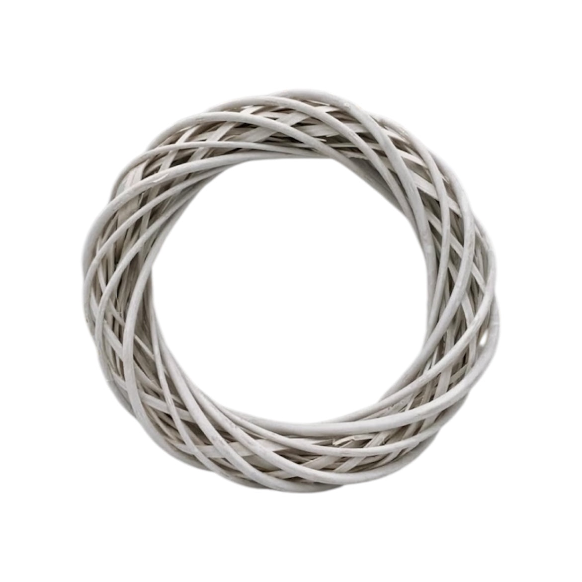 Ghirlanda realizzata in cordoncini di vimini intrecciati, finitura bianca opaca. Perfetta come base decorativa per fuoriporta, allestimenti floreali e progetti creativi. Il design pulito e moderno la rende ideale per decorazioni sia natalizie che primaverili. Dimensioni: 30x6 cm.